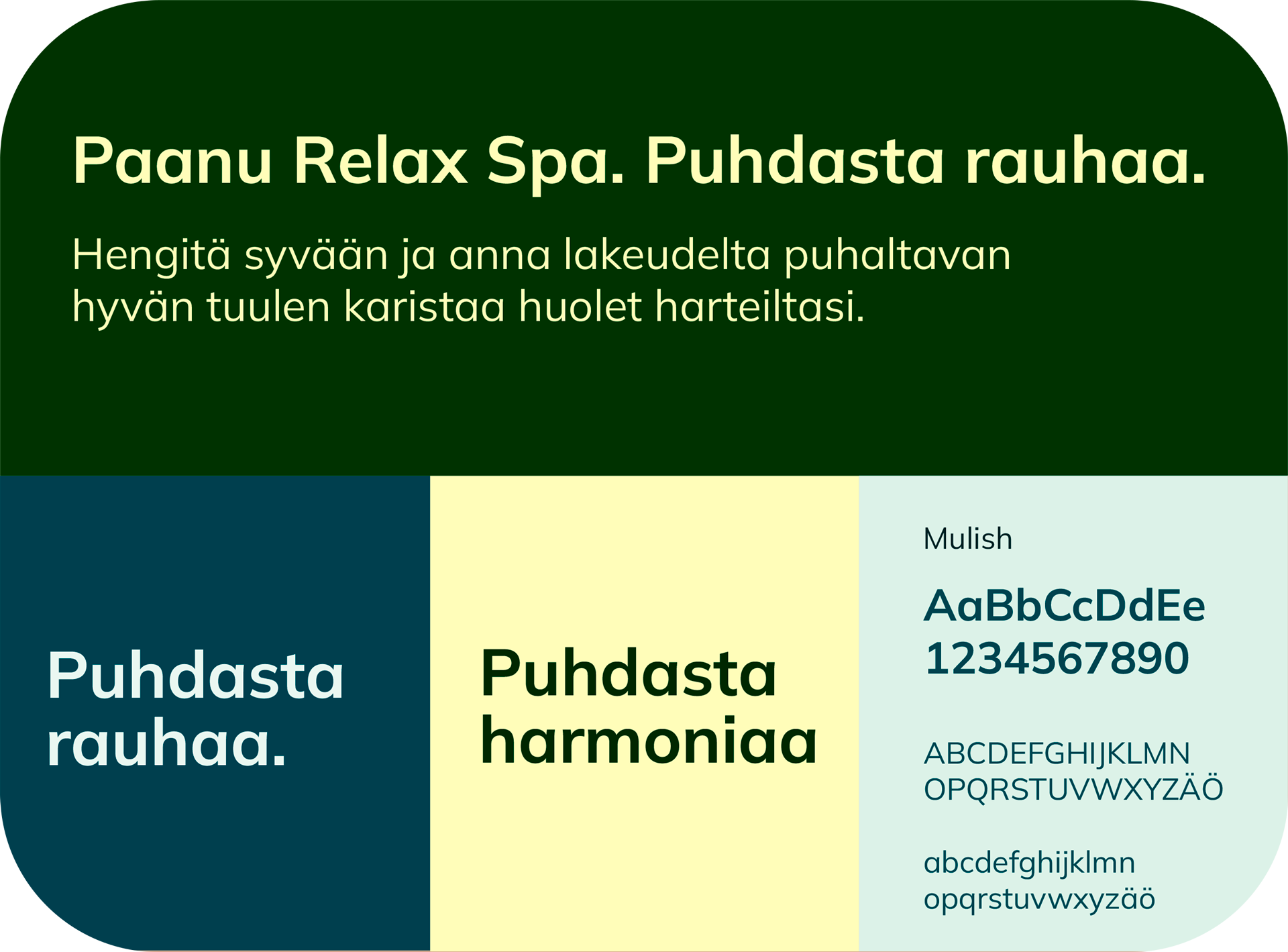 - Paanu Relax Span brändimuotoilu: työpajat, viestit, kuvamaailma, logo, värit, fontit, graafiset elementit